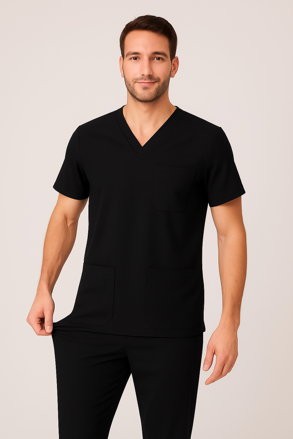 V yaka, kısa kollu, klasik kesim erkek takımı