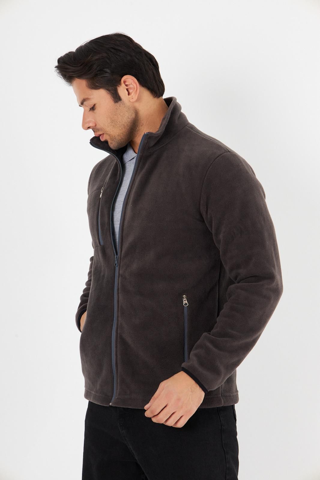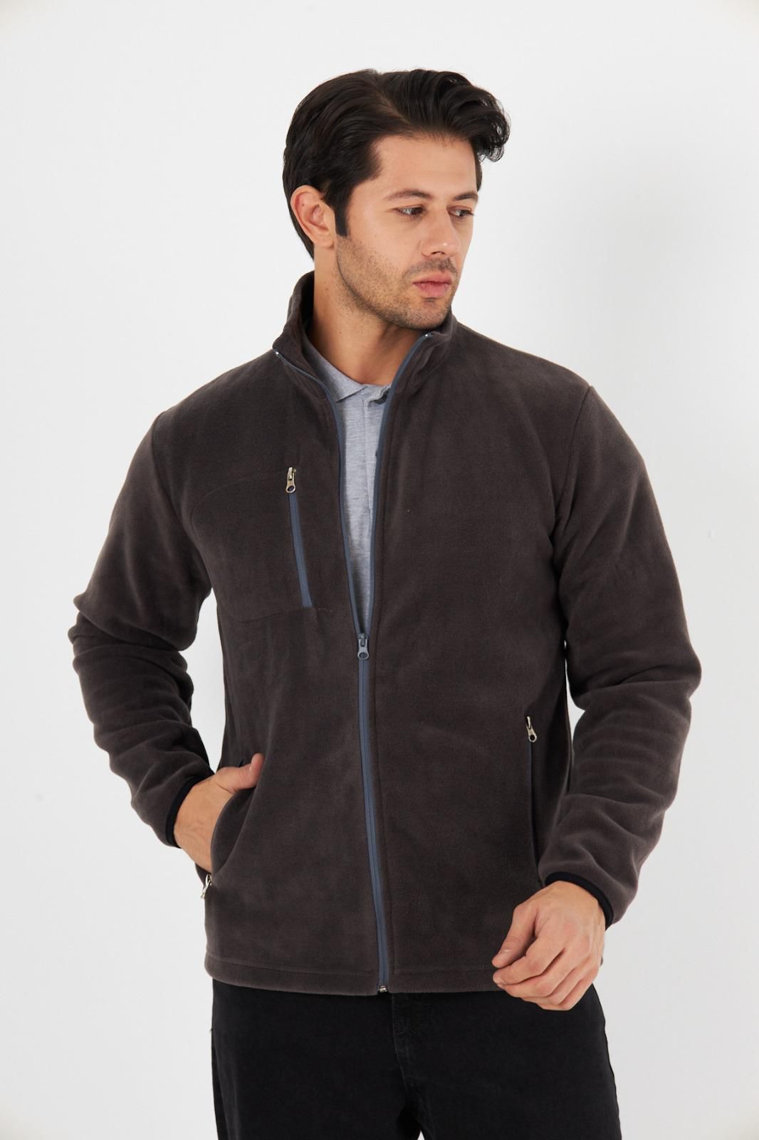Önü fermuarlı, uzun kollu, yumuşak dokulu polar mont